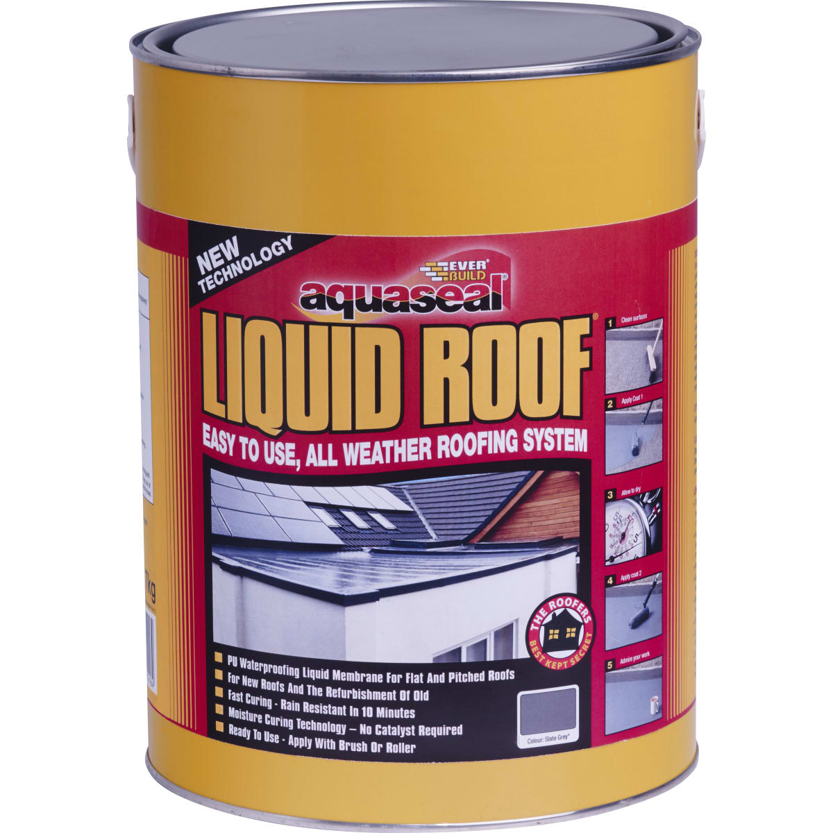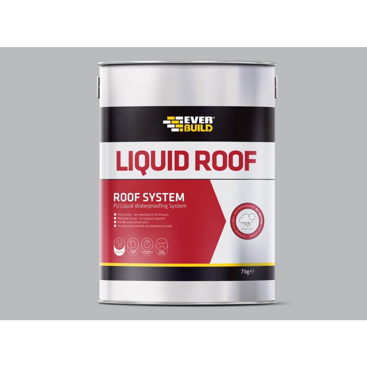 Everbuild Liquid Roof Waterproofing System is an easy to use, all weather roofing system ideal for waterproofing any flat or pitched roofs. Creating a solid waterproof membrane covering the entire surface area without any seams as well as being fast curing, becoming rain resistant in 10 minutes.