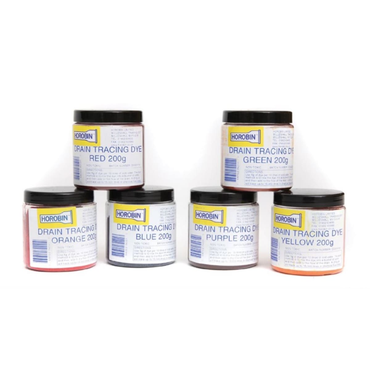 Horobin Drain Tracing Dye is designed for identifying the flow of water in drainage systems, suitable for individual drain runs and common gullies. The dye is able to trace the direction of the flow between manholes with a 200 gram jar able to trace up to 15,000 litres in chemical free water.