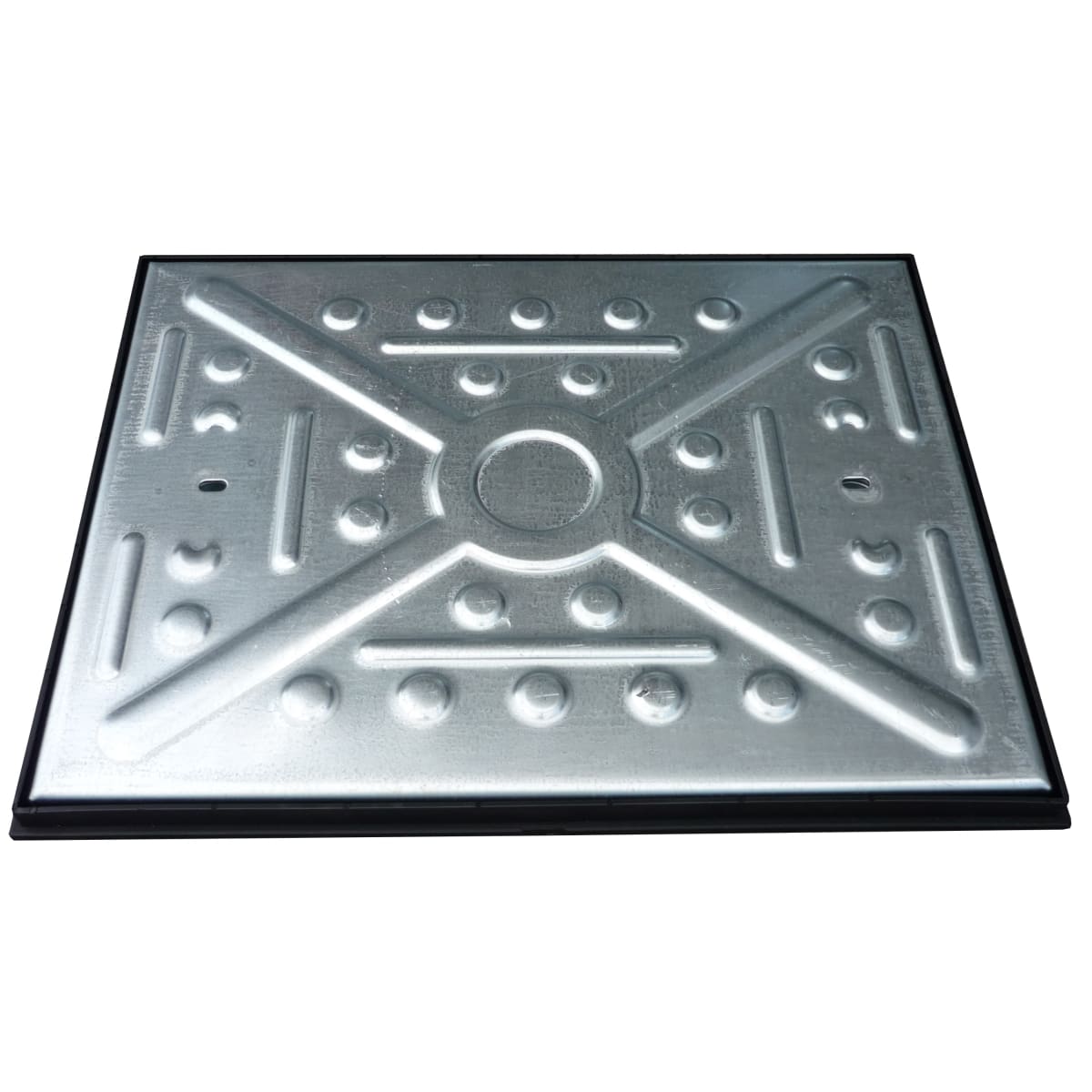 EJ Single Seal Manhole Cover 10 Tonne 600 x 450 x 25mm (L x W x D) Galvanised is manufactured from deep-pressed steel. It is a non-locking manhole cover with a 25mm deep polyprop frame. Lid of the product is underbraced when required to meet the load rating.