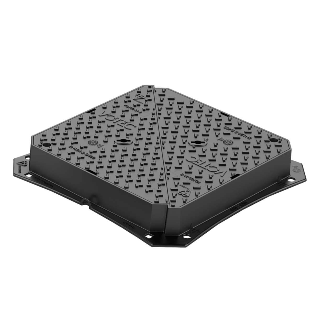 The VOTEC D400 Access Cover and Frame 600 x 600 x 100mm (L x W x D) Ductile Iron features double triangular lids and a 100mm deep frame. For use in lower traffic application areas.